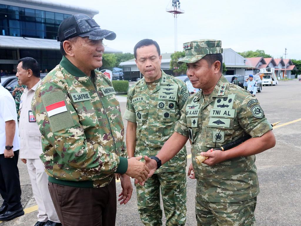Komandan Komando Daerah TNI Angkatan Laut (Dankodaeral) VI Laksamana Muda TNI Andi Abdul Aziz, S.H., M.M., turut mengantar keberangkatan Menteri Pertahanan (Menhan) RI Sjafrie Sjamsoeddin beserta rombongan usai melaksanakan kunjungan kerja di wilayah Sulawesi Selatan. Prosesi pelepasan berlangsung di Base Ops Lanud Sultan Hasanuddin, Makassar, Selasa (09/12/2025).
