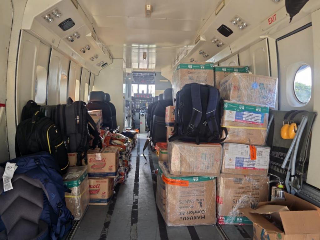 Pesawat Casa Aviocar U-6211 membawa logistik dari Banda Aceh yang terpusat di Lanud SIM, yang akan disalurkan kepada masyarakat Gayo Lues yang membutuhkan.