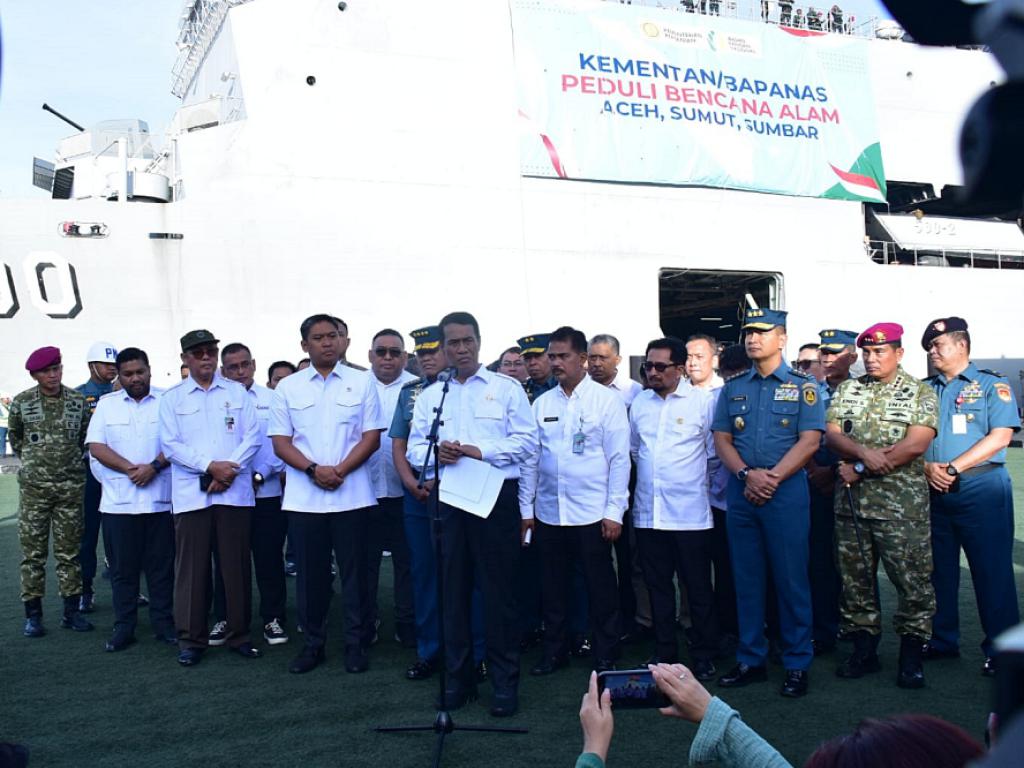 Di hadapan awak media, Menteri Pertanian RI menyampaikan bahwa kegiatan tersebut merupakan tindak lanjut arahan Presiden Republik Indonesia Bapak Prabowo Subianto untuk hadir membantu meringankan beban masyarakat yang terdampak bencana alam. “Ini kolaborasi kami dengan TNI Angkatan Laut dalam mengirimkan barang ke Aceh, Sumatera Utara, dan Sumatera Barat untuk meringankan beban saudara-saudara kita yang terkena bencana,” ujar Mentan RI.