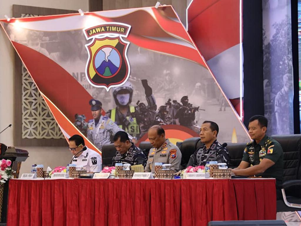 Panglima Komando Armada II (Pangkoarmada II) Laksda TNI I G. P. Alit Jaya, S.H., M.Si., menghadiri Rapat Koordinasi (Rakor) Lintas Sektoral Operasi Lilin Semeru 2025 yang dipimpin oleh Kepala Kepolisian Daerah Jawa Timur Irjen Pol. Drs. Nanang Avianto, M.Si., bertempat di Gedung Mahameru Polda Jawa Timur, Rabu (17/12).