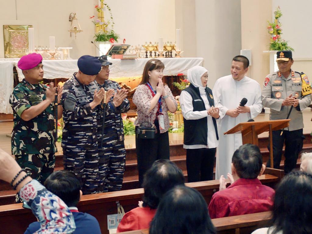 Menjelang perayaan Natal 2025, Komandan Pasmar 2 Mayjen TNI (Mar) Dr. Oni Junianto mendampingi Gubernur Jawa Timur Dr. Hj. Khofifah Indar Parawansa, M.Si., meninjau kesiapan pelaksanaan ibadah Natal di Gereja Santa Maria Tak Bercela Jl. Ngagel Madya No.1, Baratajaya, Kec. Gubeng, Surabaya, Rabu (24/12/2025).