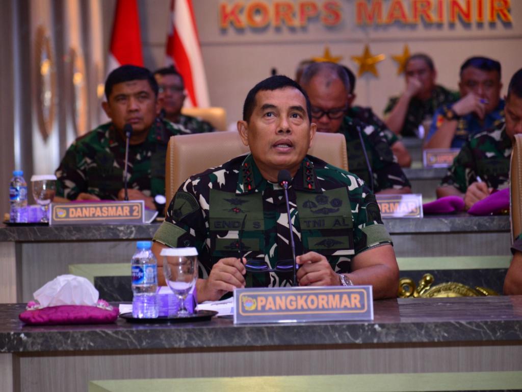 Panglima Korps Marinir (Pangkormar) Letnan Jenderal TNI (Mar) Dr. Endi Supardi, S.E., M.M., M.Tr.Opsla., CHRMP., CRMP., memberikan pengarahan kepada seluruh Komandan Satuan jajaran Korps Marinir serta para Dansatgas Dalam dan Luar Negeri secara Video Conference dari Ruang Vicon Puskodal Kormar, Gedung Agoes Subekti, Markas Komando Korps Marinir, Jalan Prajurit KKO Usman dan Harun No.40 Kwitang, Jakarta Pusat, Selasa (06/01/2026).