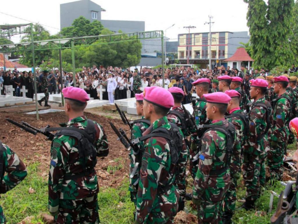 Sebagai bentuk penghormatan terakhir kepada pahlawan kusuma bangsa yang gugur di medan tugas, prajurit Batalyon Marinir Pertahanan Pangkalan (Yonmarhanlan) VII Kupang yang di pimpin Danyonmarhanlan VII Kupang Mayor Marinir Horiyanto mengikuti prosesi upacara pemakaman militer Almarhum Kopda (Anumerta) Satrio Tino Taopan yang digelar di Taman Makam Pahlawan (TMP) Dharma LokaJalan Timor Raya Pasir Panjang Oeba Kota Kupang Nusa Tenggara Timur. Minggu, (11/01/2026).