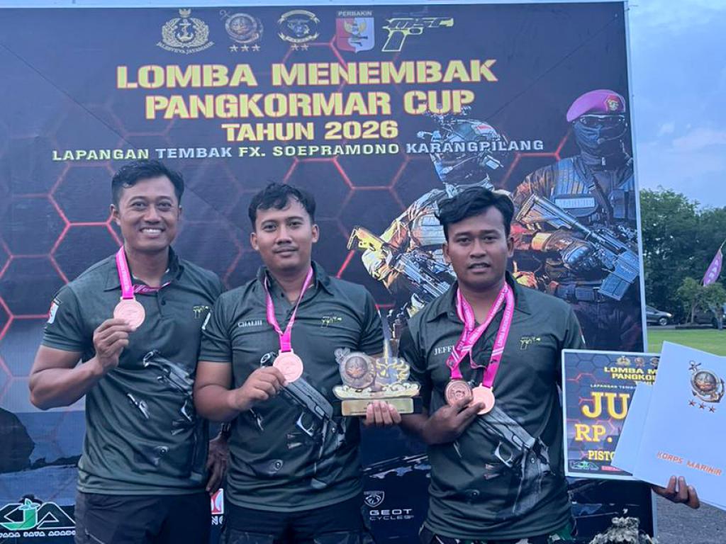 Atlet Tembak Pistol Detasemen Intai Para Amfibi 2 Marinir (Denipam 2 Mar) berhasil meraih juara 3 pada Lomba Menembak Pangkormar Cup 2026 yang dilaksanakan di Lapangan Tembak internasional FX, Soepramono, Karangpilang, Surabaya. Minggu (25/01/2026).
