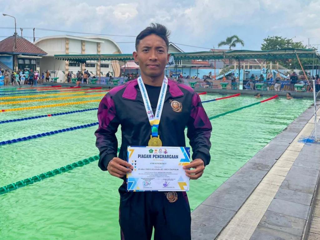 Atlet Pasmar 2 dari Batalyon Infanteri 1 Marinir Serda Marinir Andi M. Nurrizki F. meraih 3 (tiga) gelar juara pertama pada Kejuaraan Renang Open Swim 2026 di Kolam Renang Sendang Delta Gelanggang Olahraga (GOR) Kabupaten Sidoarjo, Jawa Timur, Minggu (08/02/2026).
