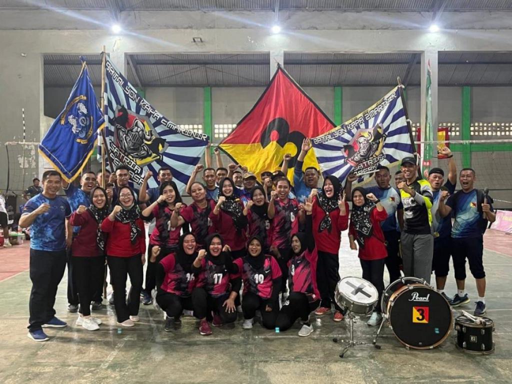 Menyemarakkan Hari Ulang Tahun (HUT) Pasmar 2 yang ke-25, Batalyon Kapa 2 Marinir menurunkan atlet putri terbaiknya yang tergabung dalam Keluarga Besar Tentara Nasional Indonesia (KBT) pada perlombaan Bola voli yang dilaksanakan di Gor Karang Pilang Surabaya. Kamis (05/02/2026).