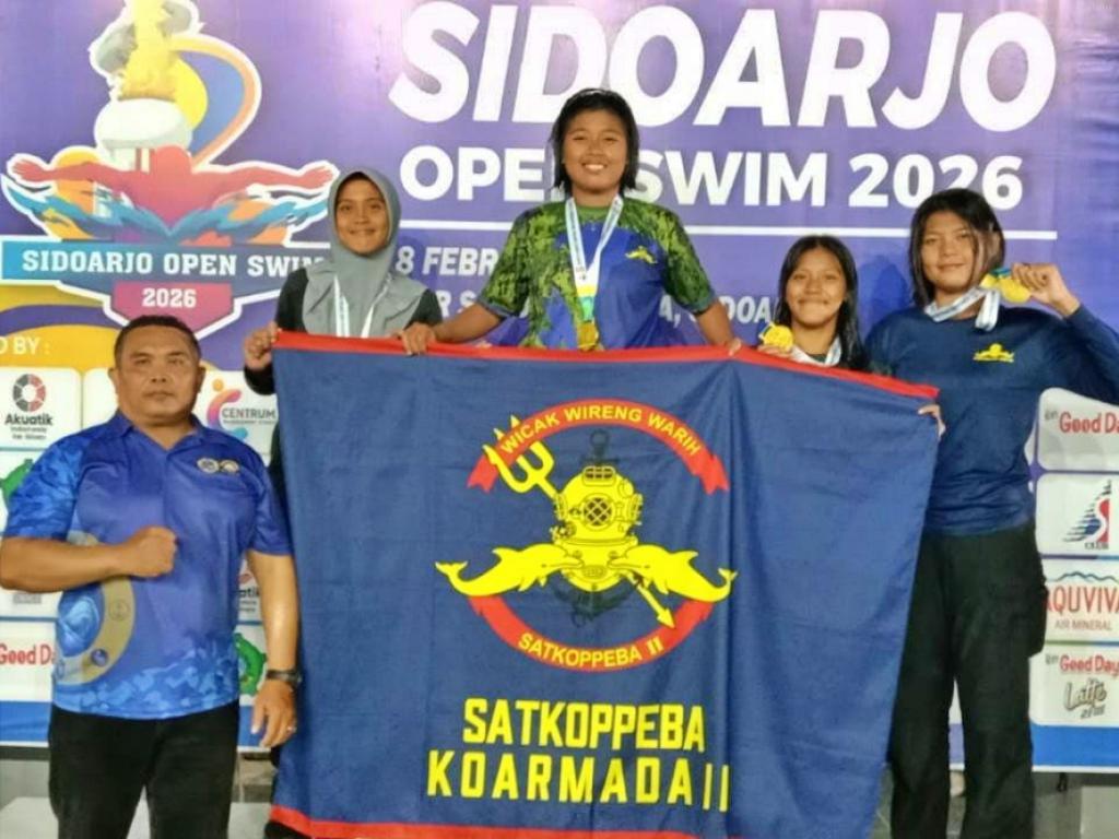 Atlet Yanus Renang Koarmada II kembali menorehkan prestasi membanggakan dalam ajang Kejuaraan Sidoarjo Open Swim 2026 yang digelar di Kolam Renang Sendang Delta GOR Sidoarjo, Minggu (8/2/2026). Kejuaraan ini menjadi wadah unjuk kemampuan atlet renang dari berbagai instansi dan klub, termasuk kategori TNI–Polri, yang berlangsung kompetitif dan penuh sportivitas.