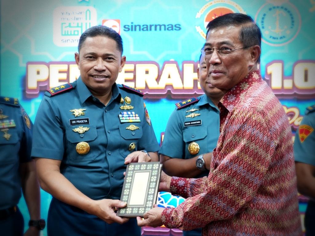 Komandan Komando Daerah TNI AL (Dankodaeral) III, Laksamana Muda TNI Uki Prasetia, S.T., M.M. mendampingi Panglima Koarmada RI, Laksamana Madya TNI Dr. Denih Hendrata, S.E., M.M. menerima penyerahaan wakaf Al-Quran dari Yayasan Muslim Sinar Mas (YMSM) bertempat di Gedung Yos Sudarso, Mako Koarmada RI, Jakarta Pusat, Rabu (25/2/2026).
