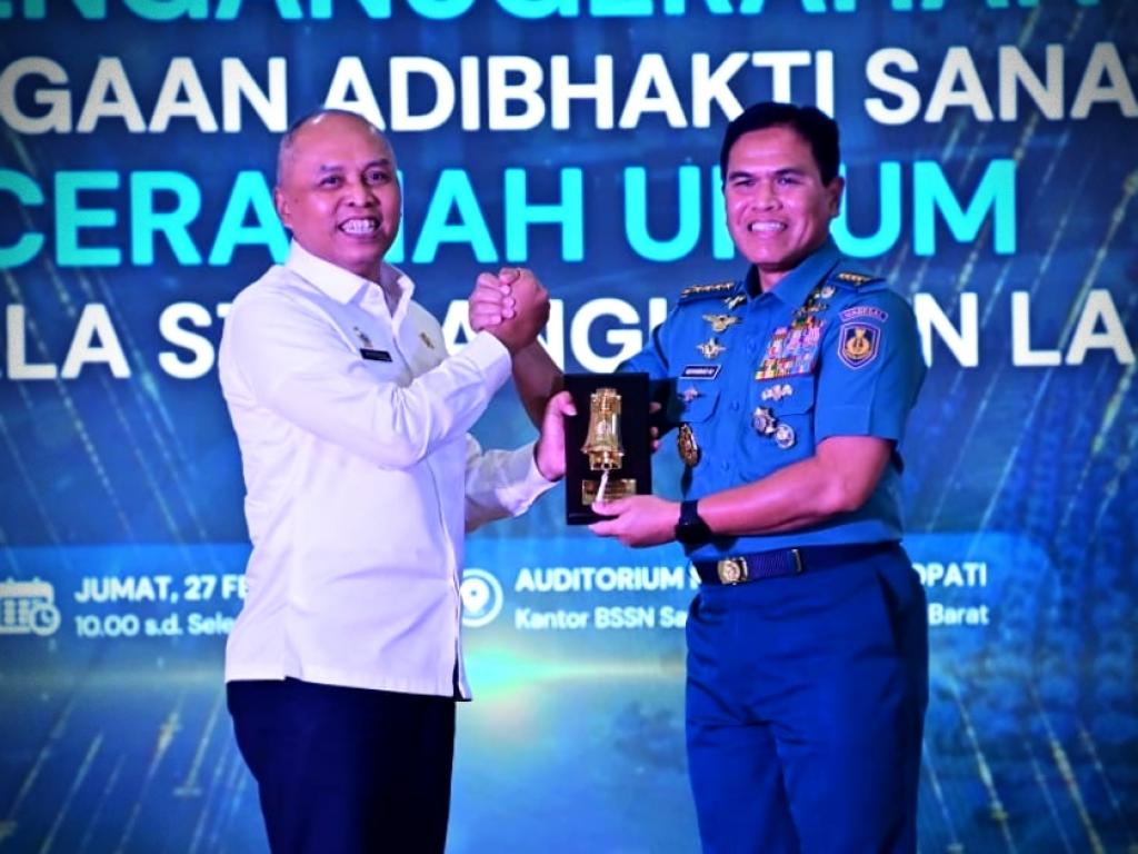 Kepala Staf Angkatan Laut (Kasal) Laksamana TNI Dr. Muhammad Ali melaksanakan kunjungan kerja ke kantor Badan Siber dan Sandi Negara (BSSN) dalam rangka memberikan Ceramah Umum sekaligus menerima penganugerahan penghargaan Adibhakti Sanapati, bertempat di Auditorium Roebiono Kertopati, BSSN Sawangan, Jumat (27/2/2026).
