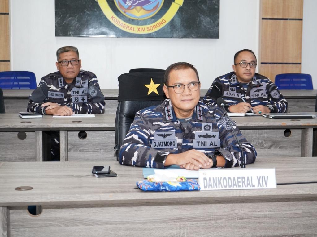 Bertempat di Ruang Vicon Mako Kodaeral XIV, secara virtual, Komandan Komando Daerah TNI Angkatan Laut XIV (Komandan Kodaeral XIV), Laksamana Muda TNI Djatmoko, S.T., M.M., CHRMP yang didampingi Inspektur Kodaeral XIV, Kolonel Laut (S) Agus Wahyu Nugraha, S.E.,M.M., dan Irops Kodaeral XIV Letkol Laut (P) Adhi Nugroho menghadiri Taklimat Akhir Audit Ketaatan, Audit Kinerja, dan Audit Tata Kelola Itjen TNI Periode I TA 2026 di Ko/Sat TNI di wilayah Papua Barat dan Papua Barat Daya, adapun kegiatan tersebut dipusatkan dari Ruang Yudha Makodam XVIII Kasuari Manokwari yang diikuti secara virtual oleh satuan lainnya, Jumat (27/02/2026).