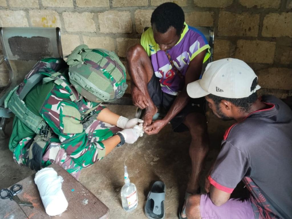 Prajurit TNI Angkatan Laut yang tergabung dalam Satgas Pamtas RI–PNG Mobile Gobang VII Yonif 9 Marinir melaksanakan kegiatan pelayanan kesehatan gratis bagi masyarakat di wilayah Maybrat, Papua Barat Daya, sebagai bagian dari penguatan pembinaan teritorial dan dukungan terhadap stabilitas wilayah perbatasan, Selasa (4/3/2026).