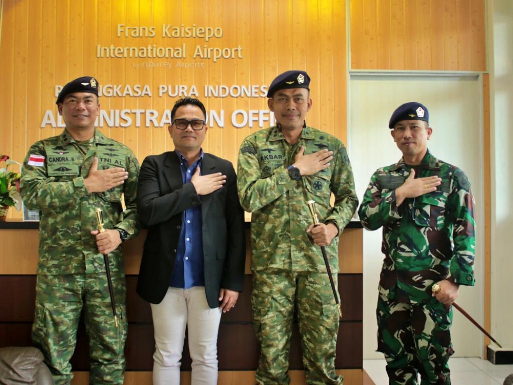 Komandan Wing Udara 3 Puspenerbal Letkol Laut (P) Arief Sukmono Akbar M.Tr.Opsla., bersama Komandan Lanudal Biak Letkol Laut (P) Candra Budiharjo M.Tr.Opsla., melaksanakan courtesy call ke Kantor Angkasa Pura Bandara Frans Kaisiepo Biak Numfor. (11/3/2026).