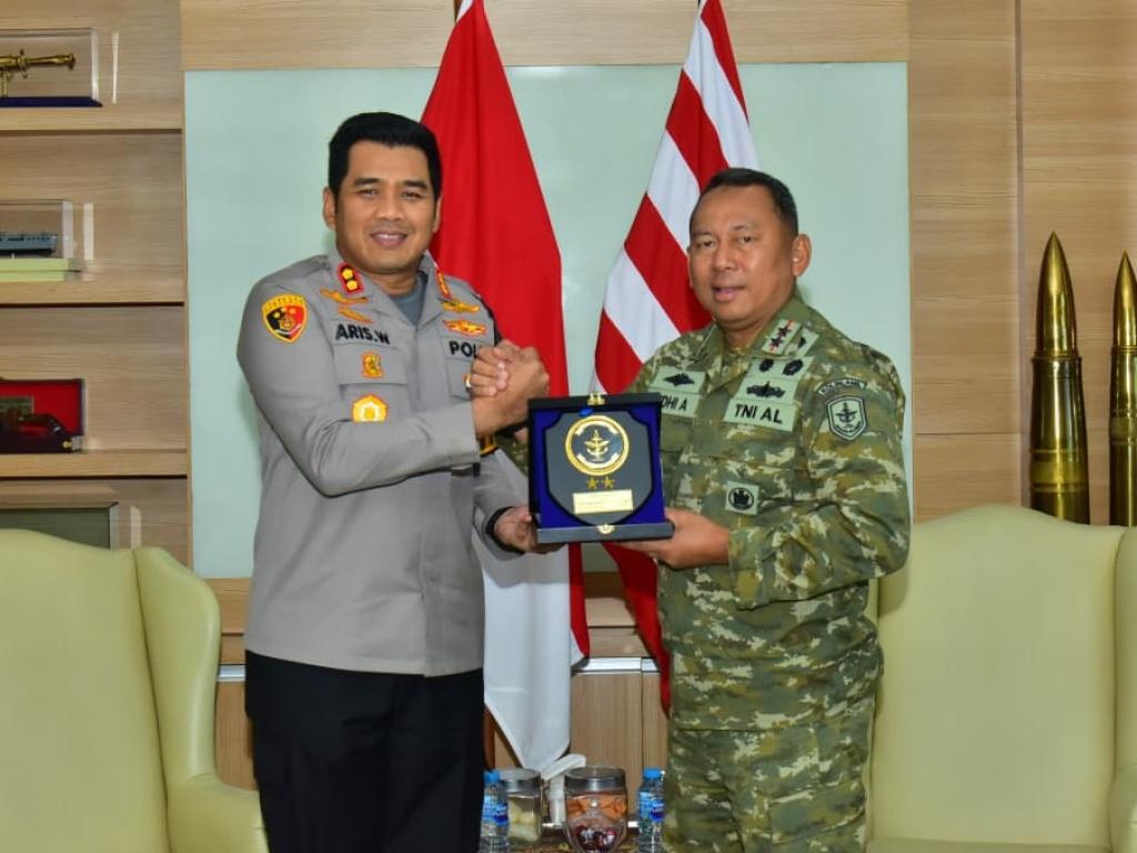 Panglima Komando Lintas Laut Militer (Pangkolinlamil) Laksamana Muda TNI Rudhi Aviantara, IH., S.E., M.Si., M.Tr.(Han)., CHRMP., menerima Courtesy Call dari Kapolres Pelabuhan Tanjung Priok Ajun Komisaris Besar Polisi (AKBP) Aris Wibowo, S.I.K., M.H dalam rangka membahas mengenai tata cara penanggulangan sampah-sampah yang ada di area pelabuhan Tanjung Priok. Kegiatan CC ini dilaksanakan di Mako Kolinlamil, Tanjung Priok, Jakarta Utara di hari Kamis (12/3/2026).