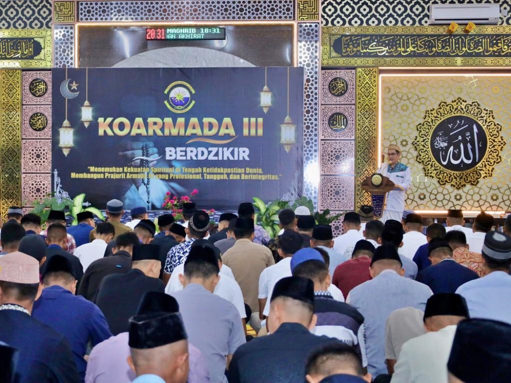 MEMBANGUN KEKUATAN SPIRITUAL PRAJURIT, ARMADA III GELAR DZIKIR DAN DOA BERSAMA DI MASJID BAITURAHMAN
