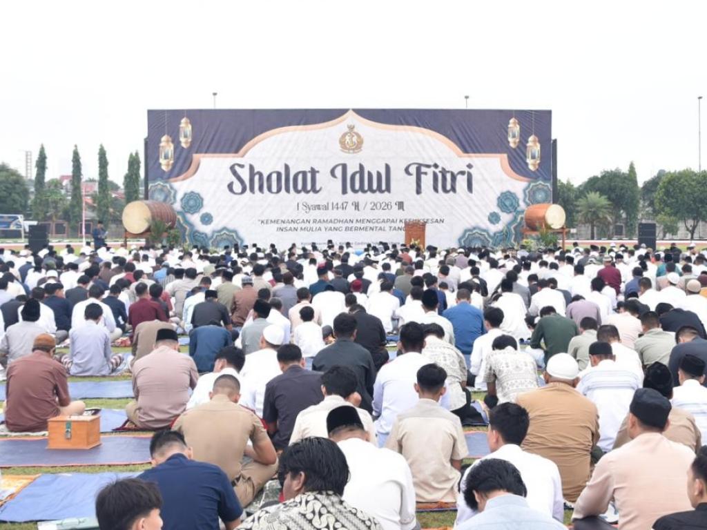 Gema takbir, tahlil dan tahmid saling bersahutan memenuhi ruang angkasa raya dalam menyambut Idul Fitri 1446 H/2025 M, Komandan Komado Daerah TNI AL (Dankodaeral) III, Laksamana Muda TNI Uki Prasetia, S.T., M.M. dan Ketua Daerah Gabungan Jalasenastri Koarmada RI, Ny. Hening Uki Prasetia melaksanakan shalat Idul Fitri, bertempat di lapangan sepak bola Kolat Koarmada I Kodamar, Jakarta Utara, Sabtu (21/3/2026).