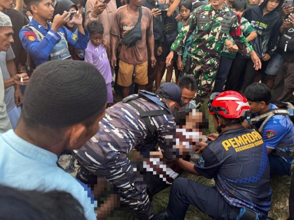 Prajurit TNI AL, dalam hal ini Posal Tanah Grogot jajaran Lanal Balikpapan, bersinergi bersama tim SAR gabungan berhasil menemukan dan mengevakuasi korban tenggelam di Pantai Bura Daya, Desa Pasir Mayang, Kecamatan Kuaro, Kabupaten Paser, Kalimantan Timur, Selasa (24/3/2026).