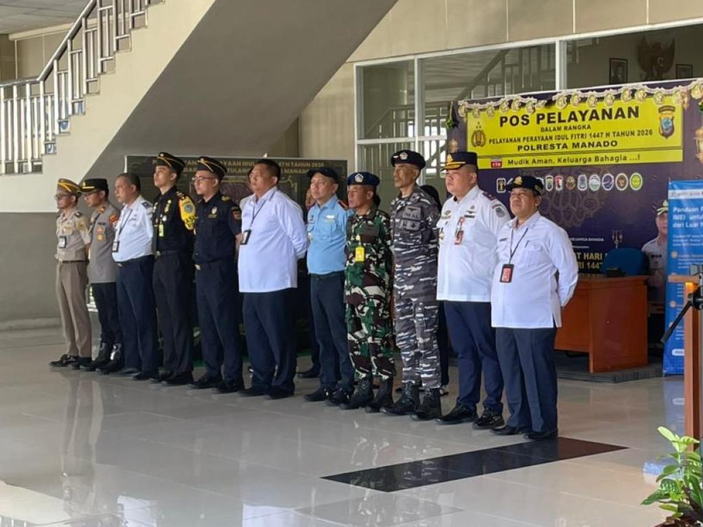 Pangkalan Udara TNI Angkatan Laut (Lanudal) Manado bersama Forum Koordinasi Pimpinan Daerah (Forkopimda) melaksanakan kegiatan penutupan Posko Pengamanan (Pam) Mudik Lebaran di Bandara Sam Ratulangi, di wilayah Kabupaten Minahasa Utara, Senin (30/3/2026).