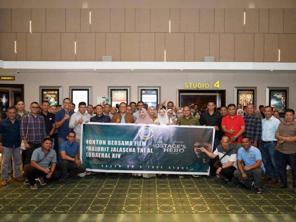 Komandan Komando Daerah TNI Angkatan Laut XIV (Komandan Kodaeral XIV), Laksamana Muda TNI Djatmoko, S.T., M.M., CHRMP, yang didampingi Ketua Daerah Kodaeral XIV Gabungan Jalasenastri Koarmada RI, Ny. Maulina Djatmoko, serta Prajurit dan PNS Kodaeral XIV serta Anggota Persatuan Purnawirawan TNI AL (PPAL) Wilayah Sorong melaksanakan kegiatan nonton bersama film The Hostage’s Hero bertempat di Bioskop XXI Jl. Ahmad Yani Kota Sorong Papua Barat Daya, Kamis (02/04/2026).