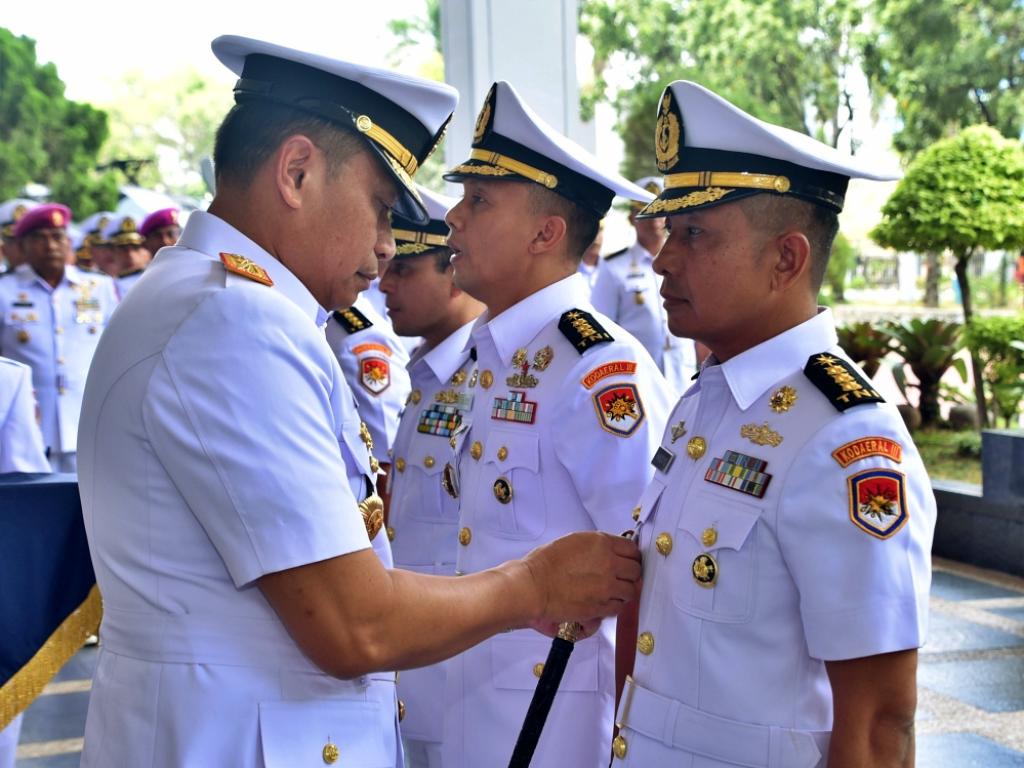 Komandan Komando Daerah TNI Angkatan Laut (Dankodaeral) III, Laksamana Muda TNI Uki Prasetia, S.T., M.M. memimpin langsung upacara kenaikan pangkat (Kenkat) Perwira Menengah (Pamen) Kodaeral III, serah terima jabatan (Sertijab) pejabat Kodaeral III serta pengukuhan jabatan Kepala Kelompok Staf Ahli (Kapoksahli), bertempat di lobby selasar Makodaeral III, Rabu (1/4/2026).