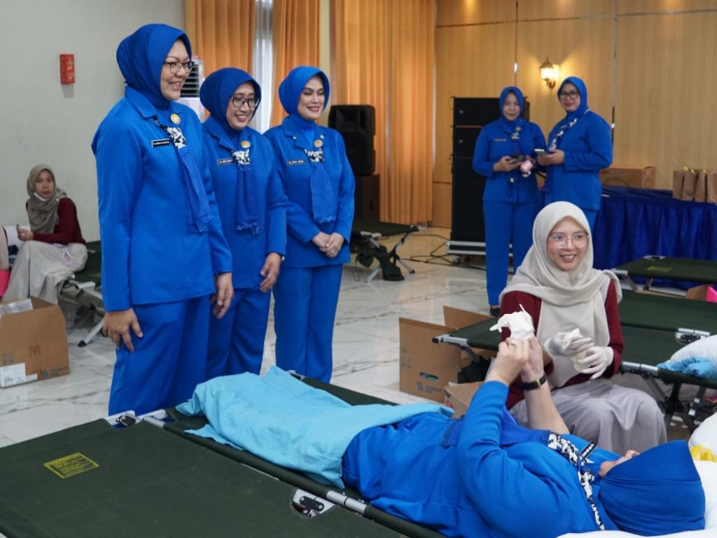PEDULI SESAMA, KODAERAL III GELAR DONOR DARAH DALAM RANGKA APEL BERSAMA WANITA TNI DAN HARI DHARMA PERTIWI KE-62 DI GEDUNG SERBAGUNA MAKODAERAL