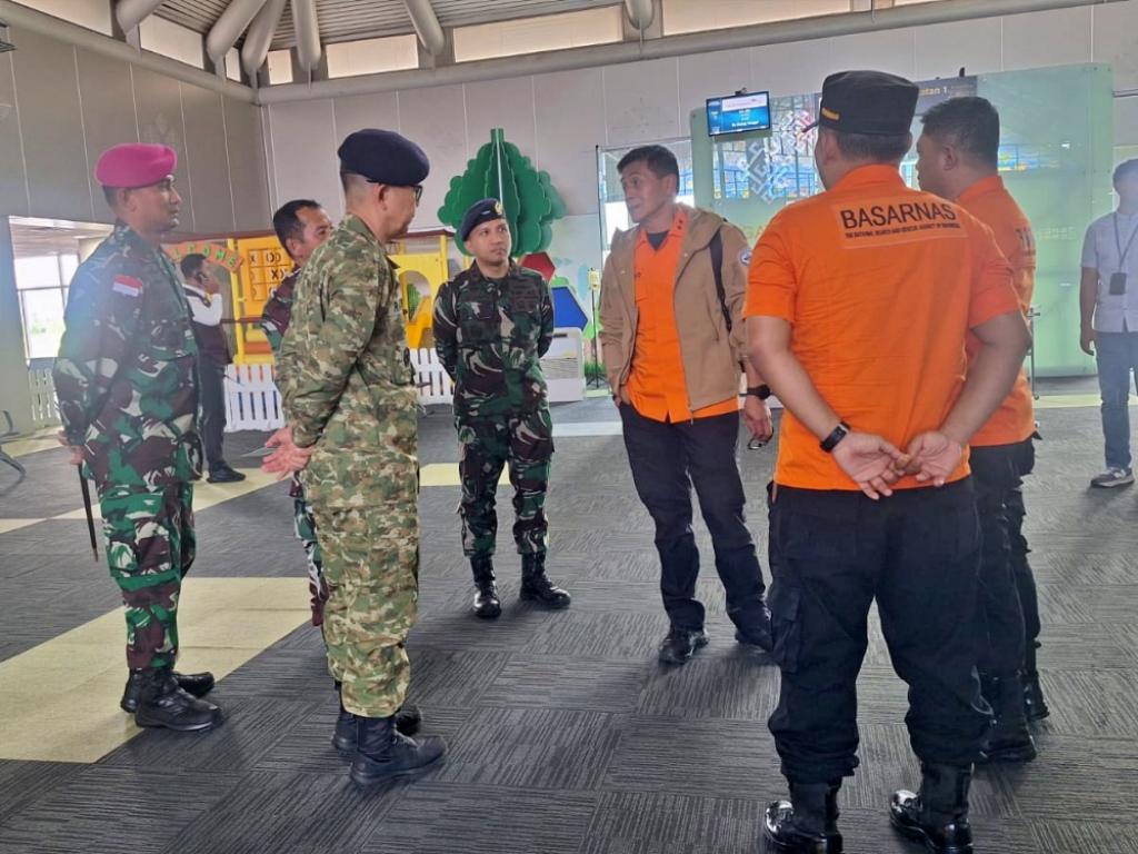 Komandan Lanudal Manado Letkol Laut (P) Akhmad Sen Sagupta melaksanakan Dukungan Pelayanan Penerbangan penyambutan kedatangan Pejabat Basarnas Deputi Operasi Pencarian dan Pertolongan dan Kesiapsiagaan Basamas Mayor Jenderal TNI (Mar) Edi Prakoso,S.E.,M.M. Di CIP Kolakan Bandara Sam Ratulangi Manado, Jumat (3/4/2026).