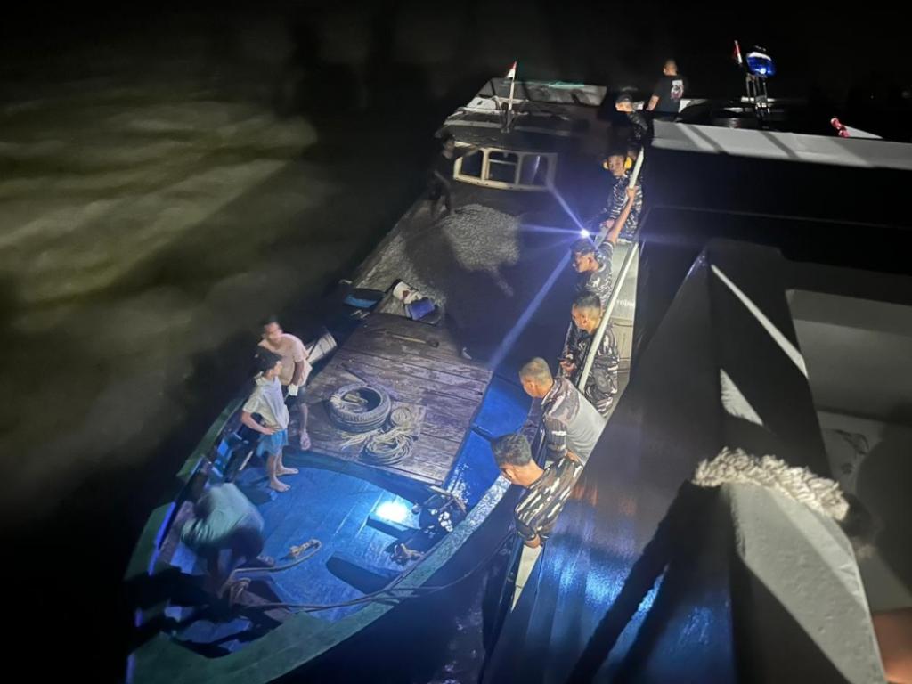 Sekitar pukul 19.50 WIB, KRI Alamang-644 tiba di lokasi dan melakukan identifikasi visual, ditemukan sebuah kapal kecil di lambung kiri tongkang. Selanjutnya pada pukul 20.00 WIB, KRI Alamang-644 melaksanakan pengejaran, penangkapan, dan penyelidikan (Jarkaplid) terhadap kapal yang dicurigai. Pada pukul 20.20 WIB, tim berhasil mengamankan kapal tersebut dan melaksanakan pemeriksaan lebih lanjut.