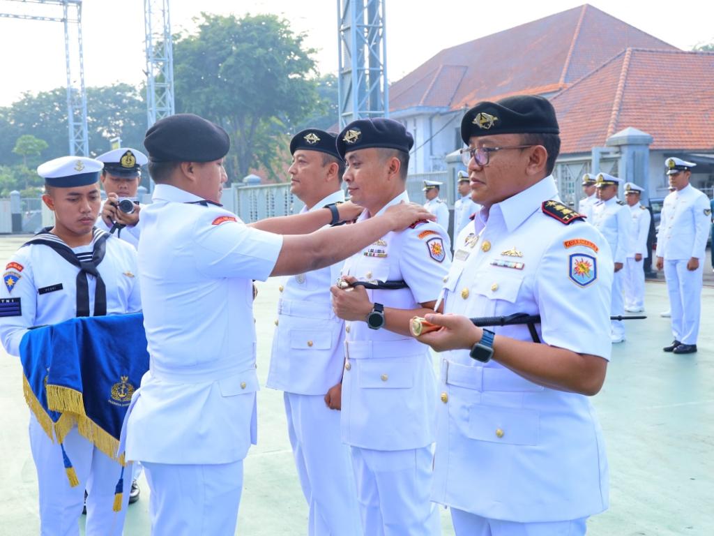 Komandan Satuan Kapal Selam (Dansatsel) Koarmada II Kolonel Laut (P) Moh. Akbar, S.H., M.H., M.M.Sc., memimpin upacara serah terima jabatan Komandan KRI Alugoro-405 dan Komandan KRI Nagapasa-403. Kegiatan tersebut dilaksanakan di Dermaga Kapal Selam Koarmada II Ujung, Surabaya, Senin (6/4/2026).
