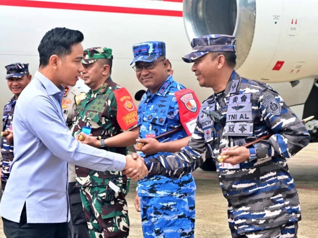 Komandan Pangkalan Udara TNI Angkatan Laut (Danlanudal) Kupang Letkol Laut (P) Erich Yuliontirta Wibawa, S.I.P., CHRMP., CSPP., turut melaksanakan penyambutan kedatangan Wakil Presiden Republik Indonesia (Wapres RI) Gibran Rakabuming Raka beserta rombongan di Bandara El Tari Kupang, Senin (06/04/2026).