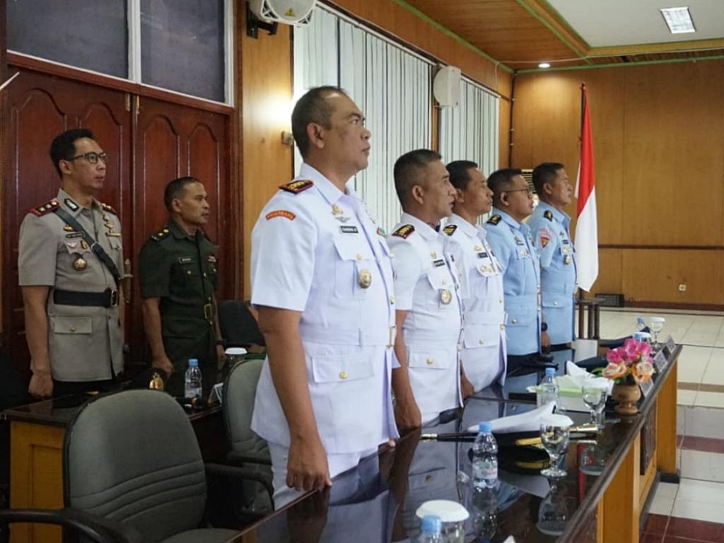 Danlanudal Biak, Kolonel Laut (P) Candra Budiharjo, menghadiri Rapat Paripurna Dewan Perwakilan Rakyat Kabupaten Biak Numfor dalam rangka penyampaian Laporan Keterangan Pertanggungjawaban (LKPJ) Bupati Biak Numfor Tahun Anggaran 2025, Senin (13/4/2026).