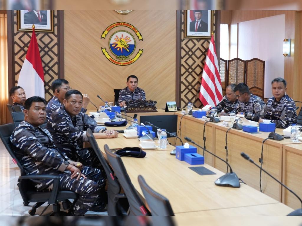 Sejalan dengan hal tersebut, Panglima Komando Armada I (Pangkoarmada I) Laksamana Muda TNI Haris Bima Bayuseto, S.E., M.Si., M.Tr.Opsla., menghadiri pembukaan Latopslagab TA 2026 secara video conference di Ruang Rapat Pangkoarmada I, Markas Komando Koarmada I, Tanjungpinang, pada Selasa (14/04/2026). Kegiatan ini dipimpin langsung oleh Panglima Komando Armada Republik Indonesia (Pangkoarmada RI) Laksamana Madya TNI Dr. Denih Hendrata, S.E., M.M.