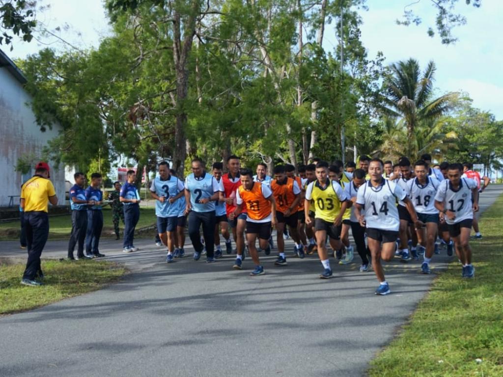 Memasuki semester l TA 2026, prajurit dan ASN Lanudal Biak melaksanakan uji kesamaptaan jasmani periode April TA 2026 di lapangan upacara Frans Kaisiepo, Lanal Biak, Rabu (15/4).