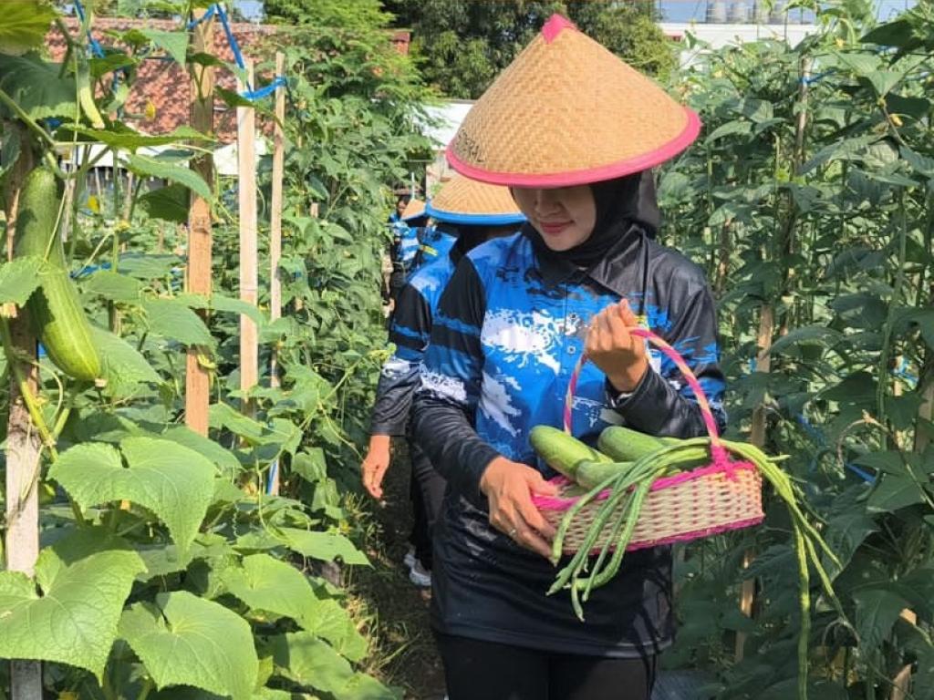 Ketua Cabang 7 Daerah Jalasenastri Armada V Gabungan Jalasenastri Koarmada RI, Ny. Indah Taufiqurochman, bersama para pengurus melaksanakan kegiatan panen raya di Kebun Mini Agro yang berlokasi di Jalan Kapten Ismail, Kota Tegal, pada Sabtu (18/4/2026). Kegiatan ini merupakan wujud nyata dukungan organisasi Jalasenastri terhadap program ketahanan pangan sekaligus upaya meningkatkan kemandirian ekonomi keluarga prajurit.