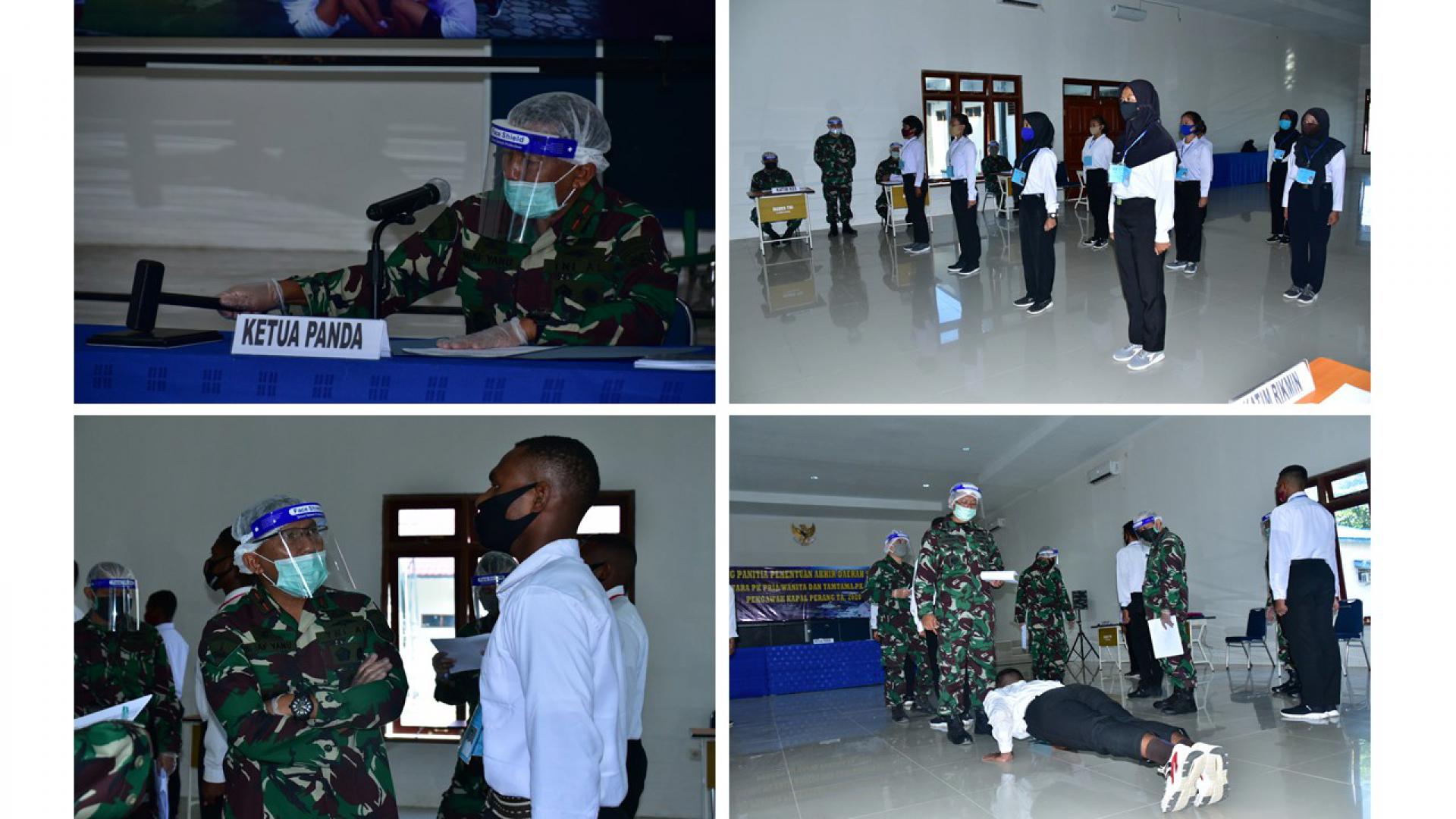 Danlantamal XIV Brigjen TNI (Mar) Suaf Yanu H. selaku Ketua Panitia Daerah (Panda) Sorong memimpin Pemantauan Akhir (Pantukhir) Calon Siswa (Casis) Bintara Pria/Wanita dan Tamtama PK TNI AL Khusus Pengawak Kapal Perang Republik Indonesia tahun 2020 serta calon Taruna Angkatan Laut tahun 2020, yang bertempat di Aula Mako Lantamal XIV Jl. Arfak No. 01, Kota Sorong, Prov. Papua Barat.