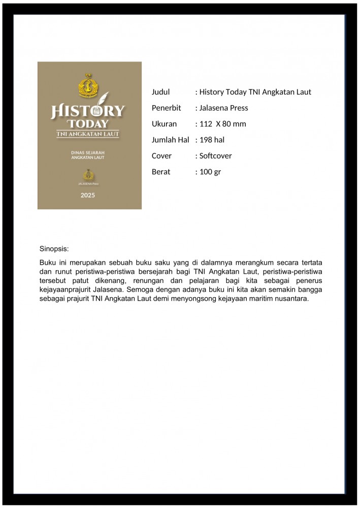 Copyright © Tentara Nasional Indonesia Angkatan Laut Komplek Militer Cilangkap, Cilangkap, Cipayung, Kota Jakarta Timur Daerah Khusus Ibukota Jakarta 13870 Kontak Kami: Email. dispenal@tnial.mil.id Telp. (021) 8723308 Hp. +6281382556085 Fax. (021) 8710628 |